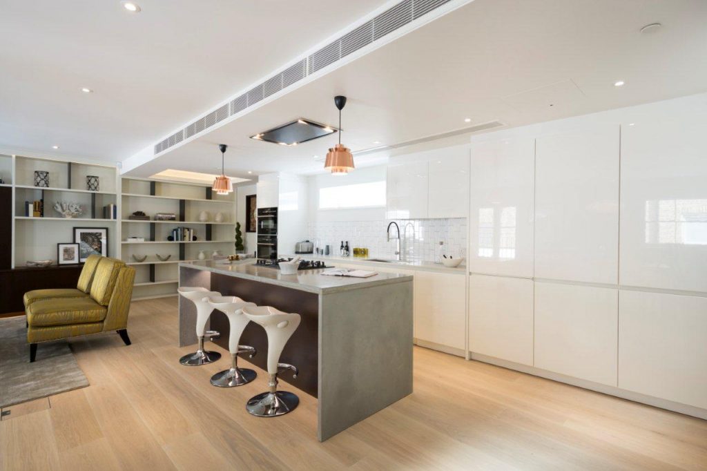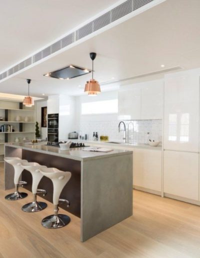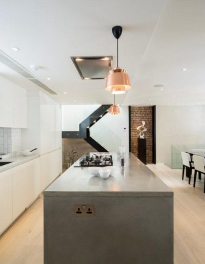 POLISHED CONCRETE KITCHEN ISLANDPOLISHED CONCRETE KITCHEN ISLANDBAYSWATERLONDON40mm edge thickness. Portland grey concrete islands for two apartments as part of an extensive renovation and development project in Bayswater. These islands have jointed end panels using a 2-3mm grout line.
